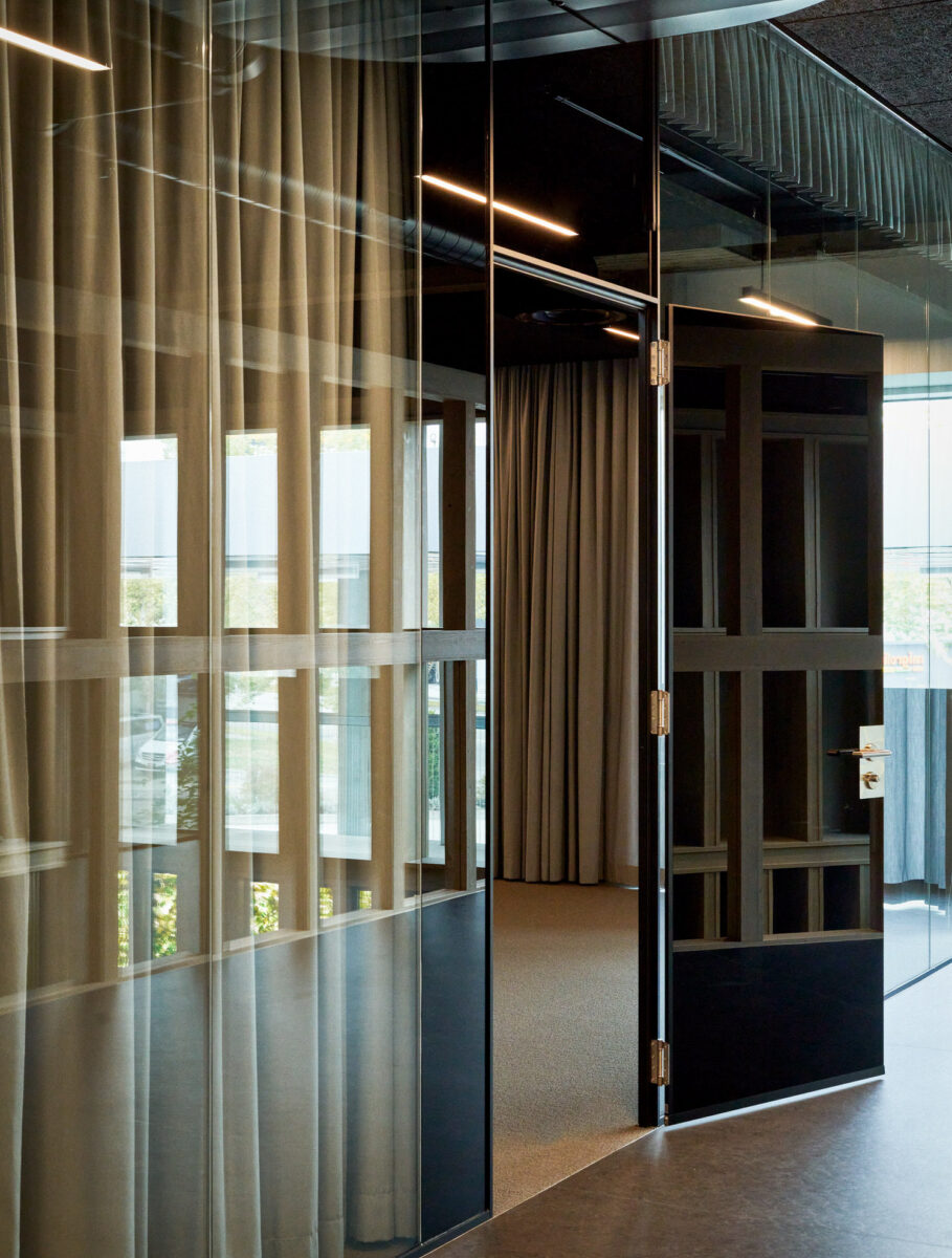 Das Recycling, das Kernthema für zukünftige Ausstellungen und den Rundgang auf dem Areal, wird mit einer Glas-Installation im Foyer plakativ in Szene gesetzt während die Teppiche und die Vorhänge aus wiederverwerteten Materialien in den Veranstaltungs- und Schulungsräumen diskret im Hintergrund bleiben.