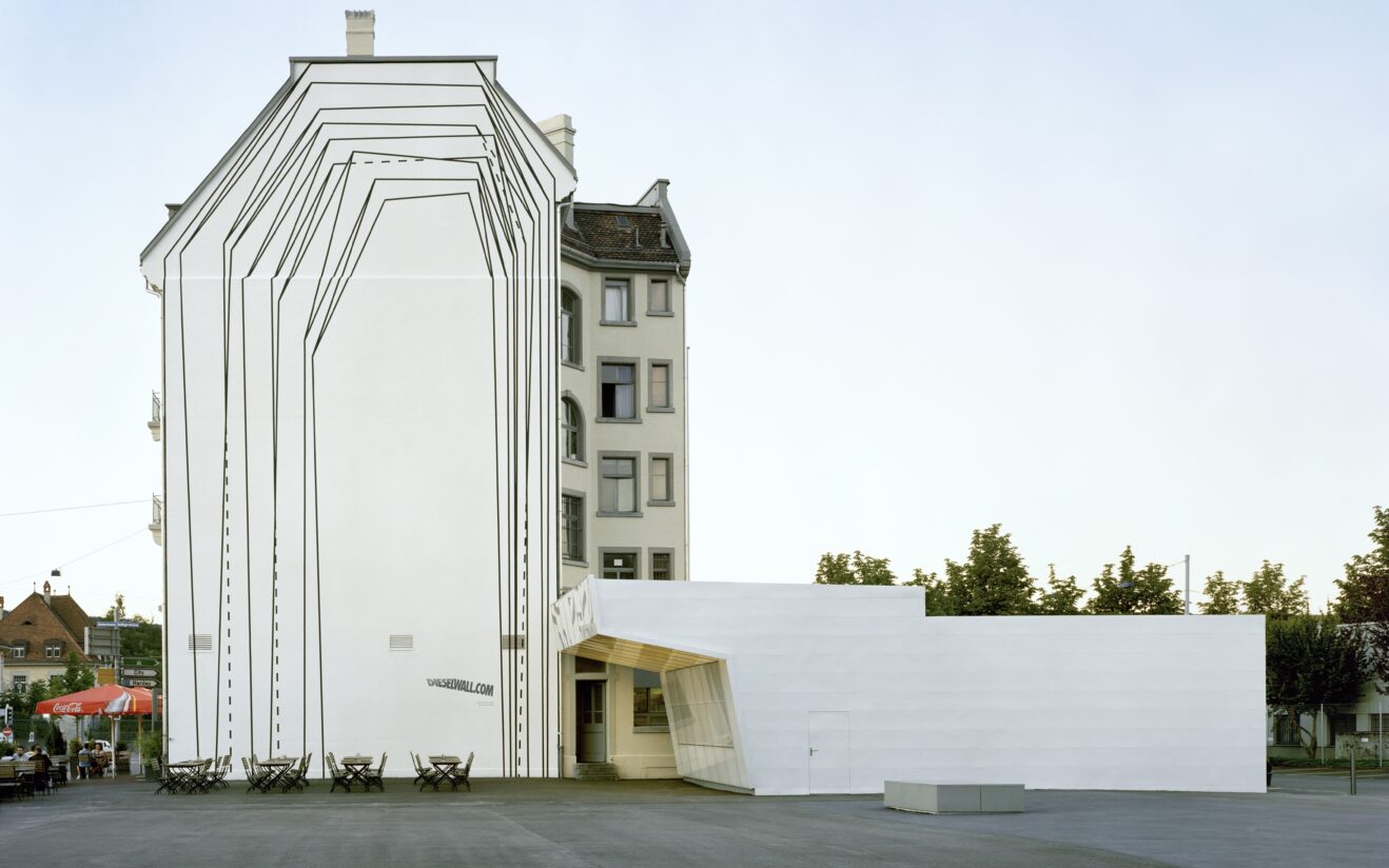 Für die Brandwand des Eckhauses schuf der Künstler Andreas Marti im Rahmen eines internationalen Wettbewerbs ein Wandgemälde.